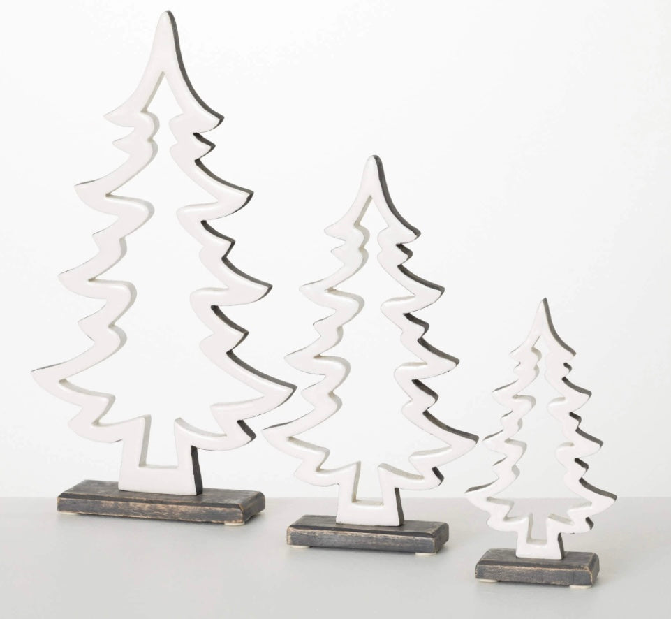These charming wooden trees bring natural beauty and Scandi chic style into your home. Crafted with a warm gray stained wood base and back with a white front.