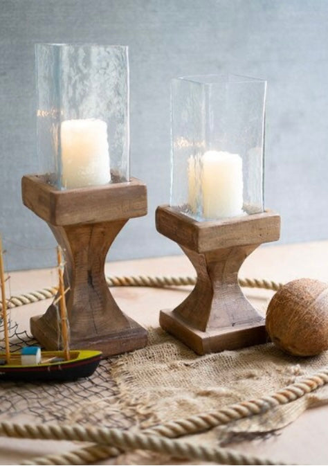 Wood Hurricane with square glass chimney
