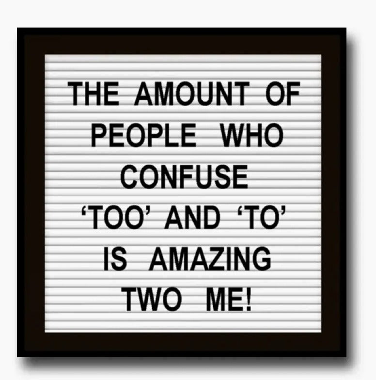 "THE AMOUNT OF PEOPLE WHO CONFUSE "TOO" AND "TO" IS AMAZING TWO ME!"